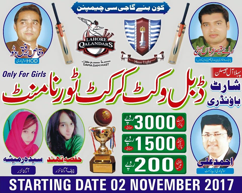 Girls Be Ready First time ever, GC University Faisalabad Layyah is organizing Girls cricket tournament Chef Organizer Hafsa Thind